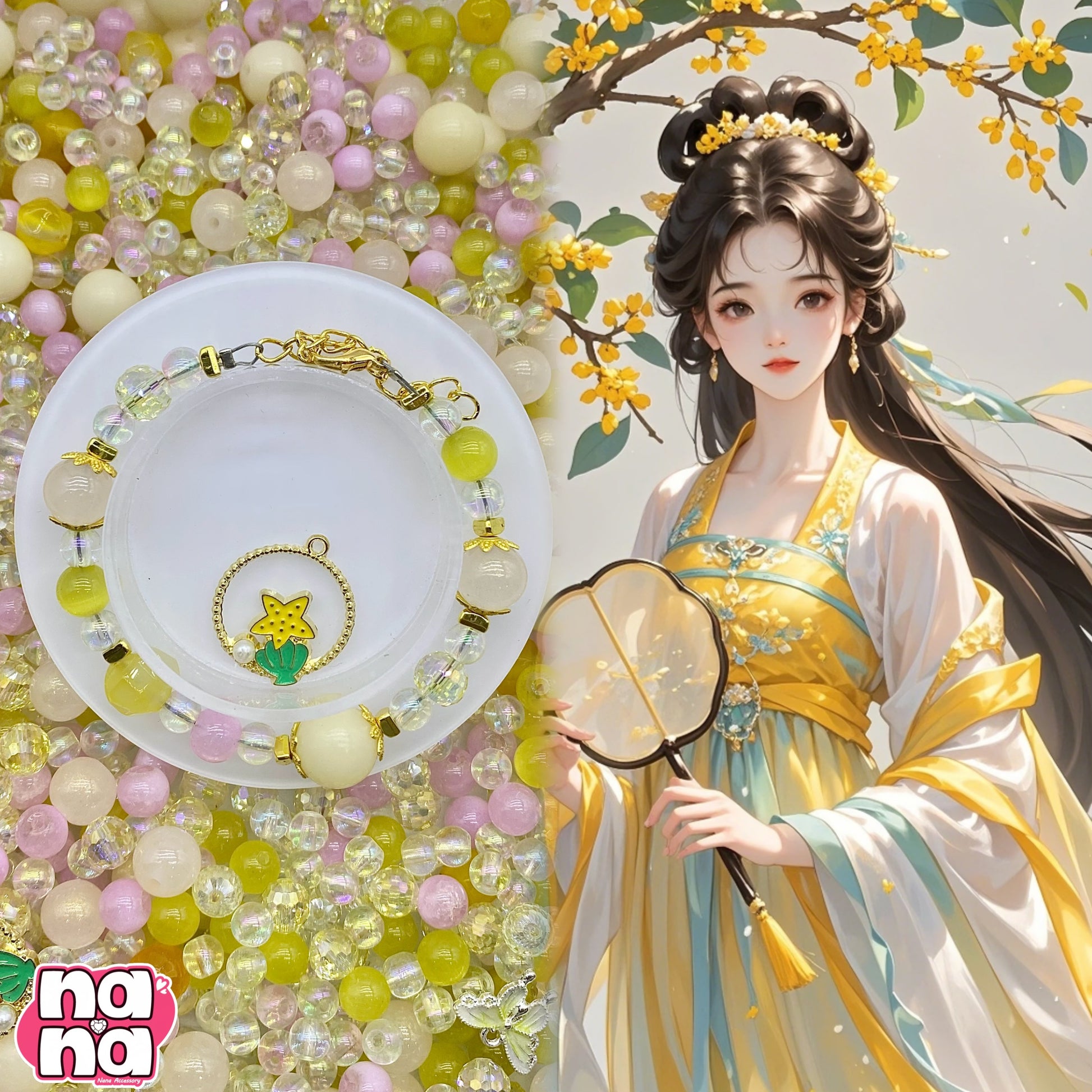 【A1002】幸せグミ 高品質天然石XキャッツアイX菩提XクリスタルXガラス(6+8+10+12)